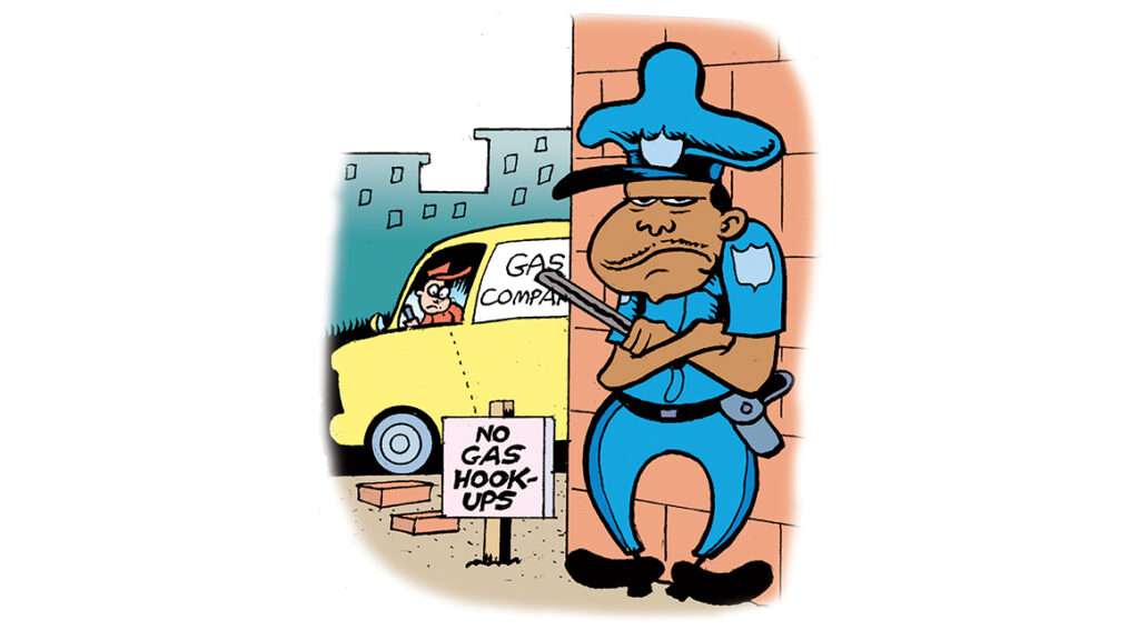 Illustration: Peter Bagge Oak Park, Illinois, banned gas hookups in new buildings. A lawsuit from natural gas and construction industry groups argues the ban violates federal laws limiting how state and local governments can limit federally regulated energy sources. City officials say the policy is necessary as part of its plan to become carbon neutral by 2050, and groups such as the American Civil Liberties Union and the Sierra Club are siding with the city in the lawsuit.
