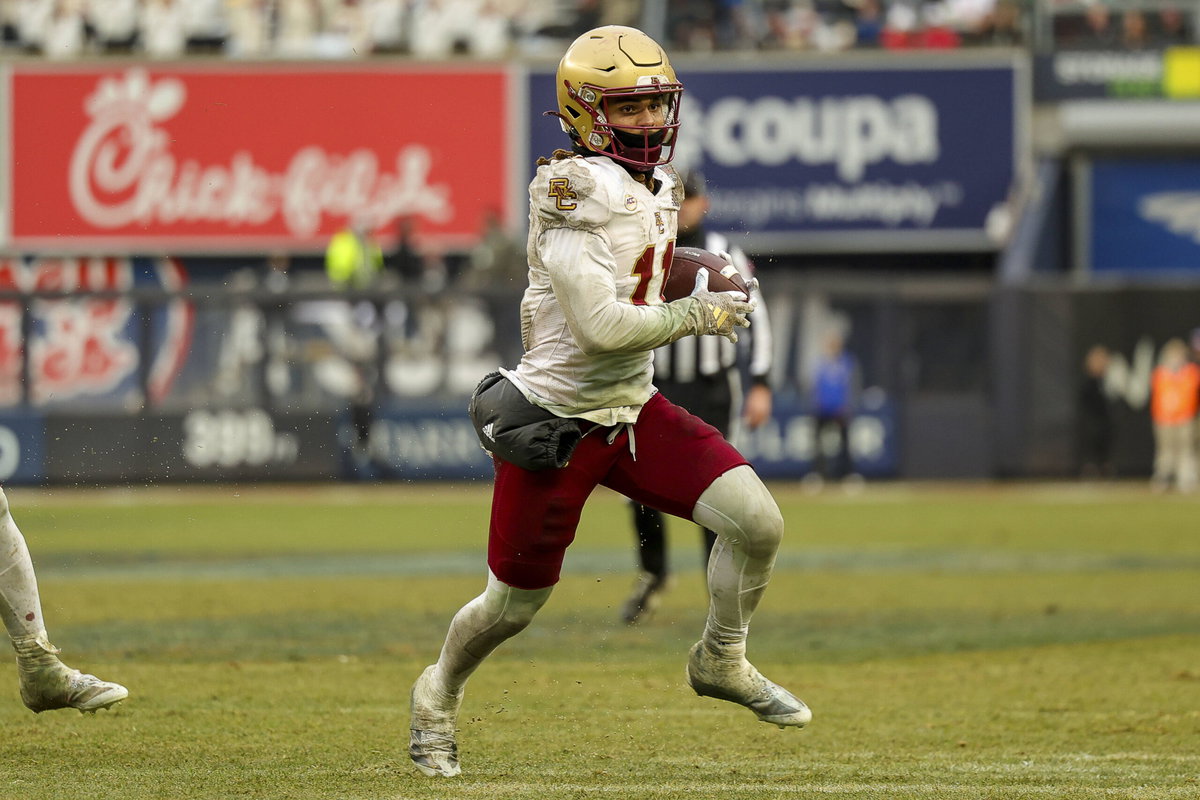 December 28, 2024, Bronx, New York, USA: Boston College Eagles wide receiver LEWIS BOND 11 runs with the ball during the 2024 Pinstripe Bowl between Nebraska Cornhuskers and Boston College Eagles at Yankee Stadium in the Bronx, NY. Bronx USA – ZUMAr225 20241228_zsp_r225_026 Copyright: xScottxRausenbergerx