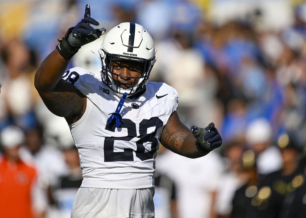 October 04, 2025 Penn State Nittany Lions defensive tackle Zane Durant 28 reacts to a stop during the NCAA, College League, USA football game between the UCLA Bruins and Penn State Nittany Lions at the Rose Bowl in Pasadena, California. Mandatory Photo Credit : /CSM Pasadena United States of America – ZUMAc04_ 20251004_zma_c04_690 Copyright: xCharlesxBausx