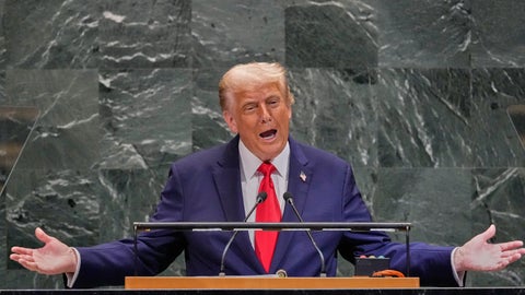 U.S. President Donald Trump addresses the 80th session of the United Nations General Assembly, Tuesday, Sept. 23, 2025.Donald Trump has accused Sadiq Khan of planning to introduce Sharia Law to London as he reignited his long-running feud with the London mayor.