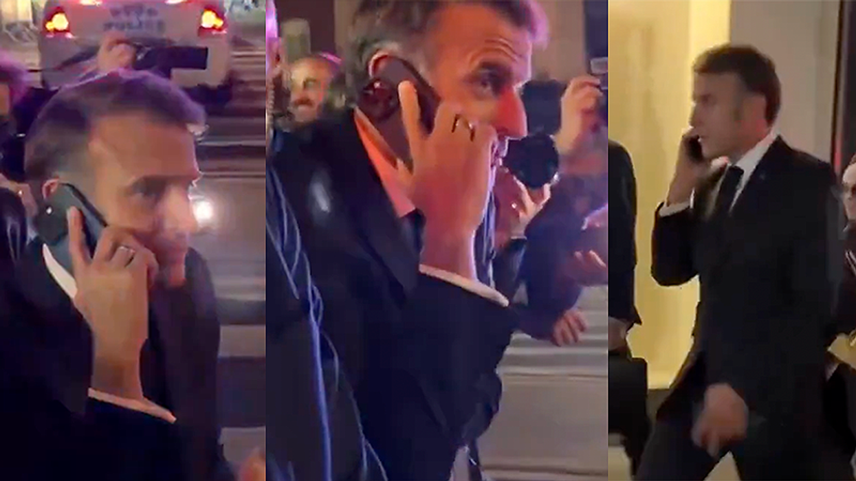 A video is going viral of French President Emmanuel Macron stepping out of his car to apparently call Donald Trump as the U.S. president's motorcade left the French leader's car stuck in Manhattan gridlock.