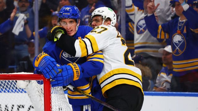 Already put to the test beyond any reasonable expectation, Sabres supporters had to do 52:02 more of hard time before they had something specific to centre all that pent-up emotion on. With his team down 2-0 to a crafty Bruins team backed by Jeremy Swayman’s strong goaltending, Tage Thompson — after two Boston defenders pinned his teammate, Peyton Krebs, against the boards — took a puck that squirted loose behind the net and stuffed it past Swayman before the goalie could get a toe to the post.