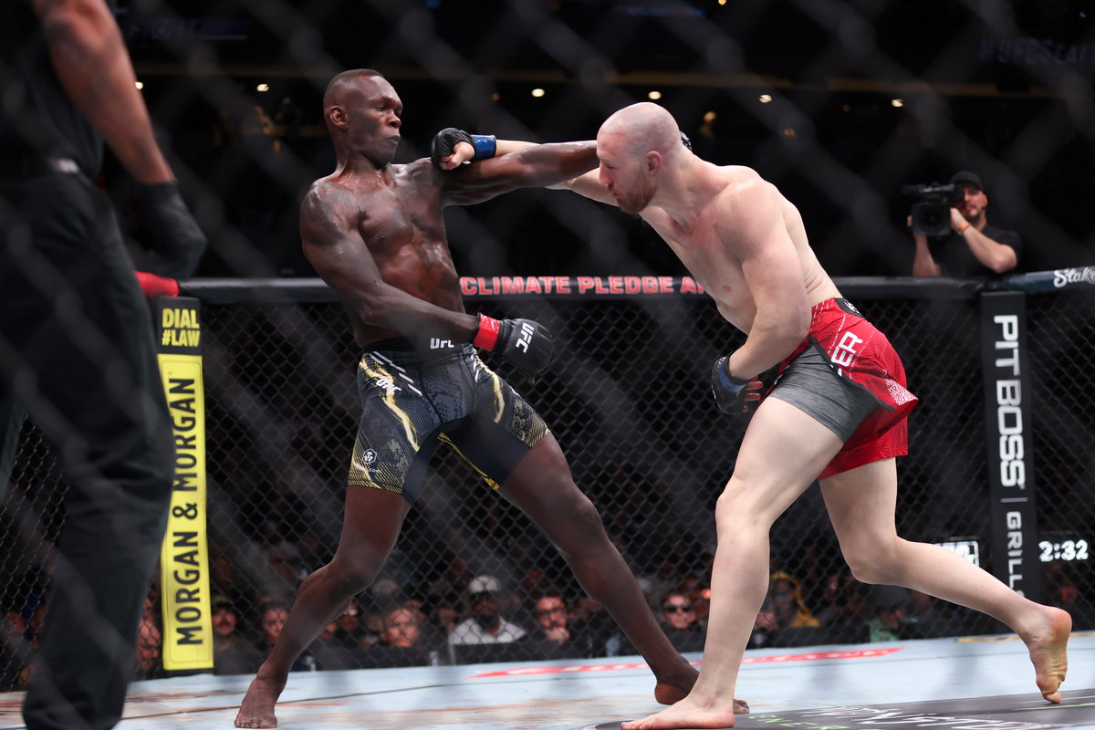 March 28, 2026, Seattle, Wa, USA: SEATTLE, WASHINGTON Ãâ MARCH 28: L-R Israel Adesanya dodges a punch from Joe Pyfer in a Middleweight bout during UFC Fight Night at Climate Pledge Arena on March 28, 2026 in Seattle, WA. UFC Fight Night: Adesanya Vs. Pyfer PUBLICATIONxINxGERxSUIxAUTxONLY – ZUMAr187 20260328_zsp_r187_144 Copyright: xJustinxRenfroex