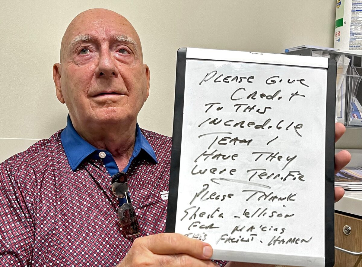 Dick thanks the entire staff. After six weeks of 35 radiation treatments on longtime ESPN college basketball analyst Dick Vitale’s vocal cords, he will await his results and continue to rest his cords for the next 6 weeks. Vitale, 84, gave thanks to the entire staff at the Brian D. Jellison Cancer Institute Oncology Radiation Center at University Parkway in Sarasota. Photographed Friday morning, September 1, 2023.
