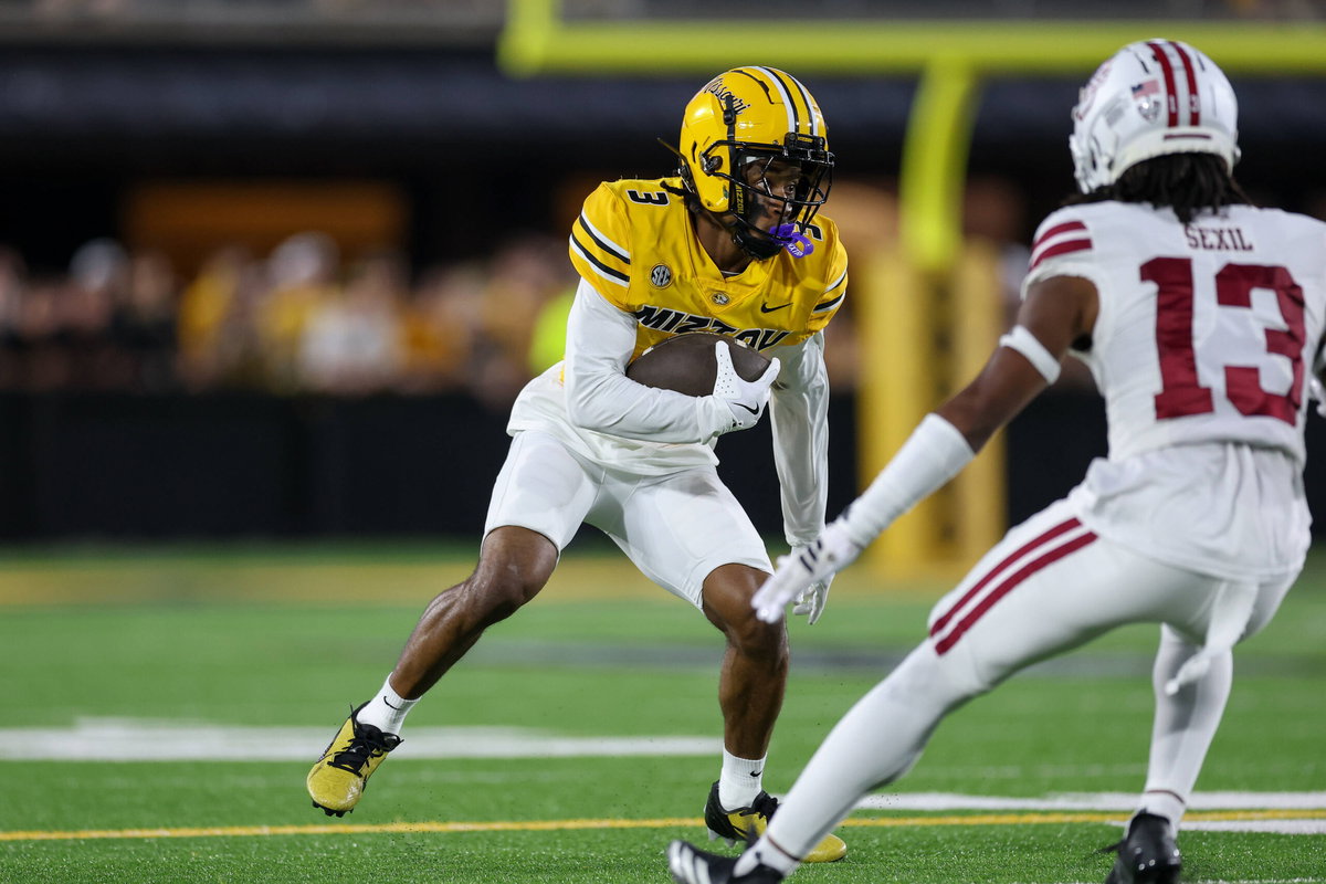 September 27, 2025: Missouri Tigers wide receiver Kevin Coleman Jr. runs the ball during an NCAA, College League, USA football game against the Massachusetts Minutemen at Faurot Field at Memorial Stadium in Columbia, MO. /CSM Columbia United States of America – ZUMAc04_ 20250927_zma_c04_671 Copyright: xDavidxSmithx