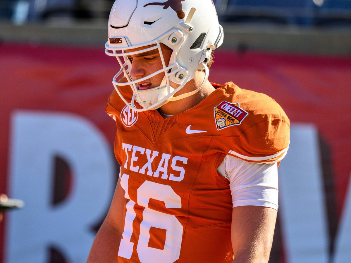 December 31, 2025: Texas Longhorns quarterback Arch Manning 16 during pre game warmups before the Cheez-Its Bowl in Orlando, FL. Romeo T Guzman/Cal Media Orlando USA – ZUMAcg2_ 20251231_faf_cg2_055 Copyright: xRomeoxGuzmanx