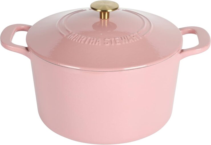 Hurry and grab the MARTHA STEWART Gatwick 7-Quart Enamel Cast Iron Dutch Oven in Pink for only $33.99!